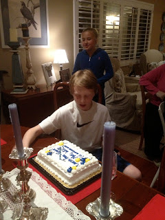 We also had a celebration dinner in his honor. Grandma Mary took Tommy and Max to see a real life Batmobile, but I don't have a picture of that.